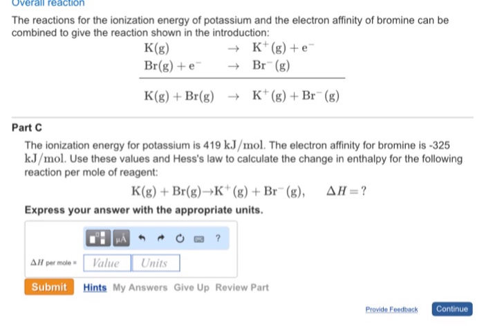 Solved: The Ionization Energy For Potassium Is 419 KJ/mol ... from d2vlcm61l7u1fs.cloudfront.net General data, thermal properties, ionization energies, isotopes, reduction potentials, abundance of elements, crystallographic data. The ionization energy is the energy required to remove an electron from its orbital around an atom the ionization energy of an element increases as one moves across a period in the periodic table. Which has the highest ionization energy chlorine bromine or selenium? Methods with effective core potentials (select basis sets). First ionization energy of bromine is 11.8138 ev. Since chlorine has 3 energy levels, but bromine has 4. First ionization energy of bromine is 11.8138 ev. Bromine ionization energy the bromine ionization energy is the energy required to remove from atom one mole of electrons with subsequent production of positively charged ion of bromine.